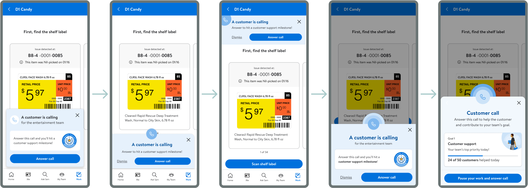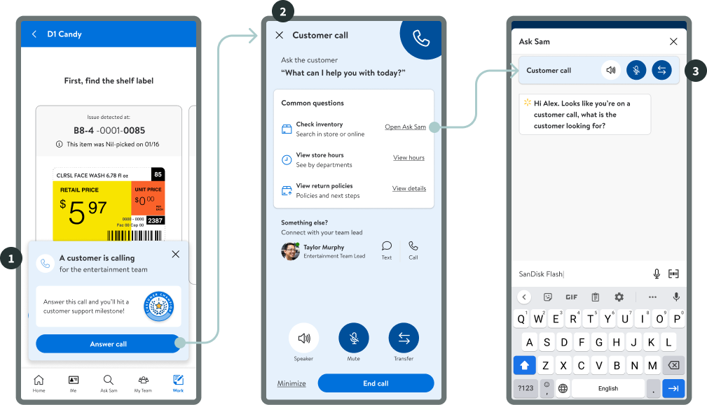 Associates are focused completing in-store tasks, so we needed to help them pause their work, serve customers by answering an incoming call, and jump back in to their previous task.
